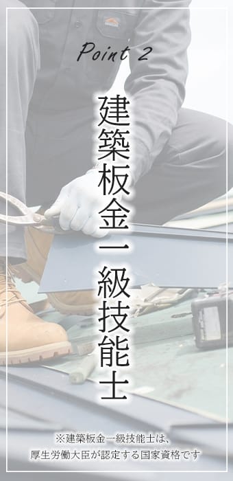 私たちは、厳しい国家試験を突破した「建築板金一級技能士」が必ず現場に立ちます。
