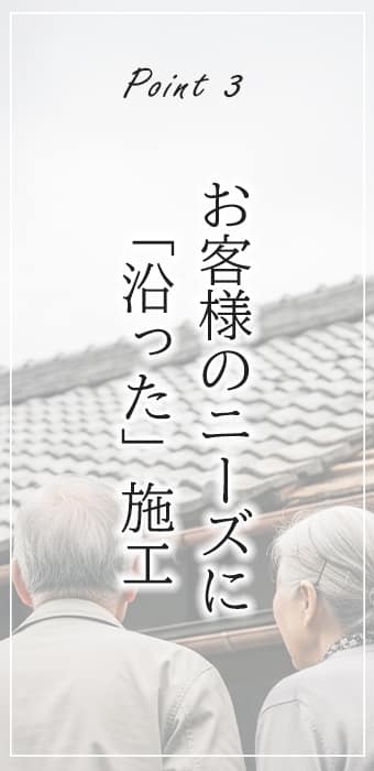 「予算内で直したい」「できるだけ長持ちさせたい」…。屋根や壁のお悩みをお聞かせ下さい。私たちは、じっくりとお話をお伺いすることから始めます。